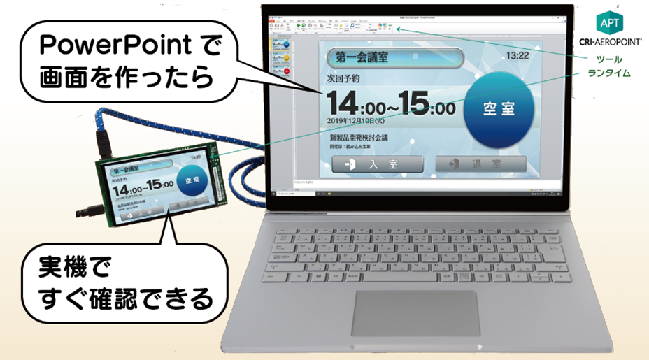 で構成され、 PowerPointで画面開発、ボタン1つですぐに実機で確認できる環境をご提供します。