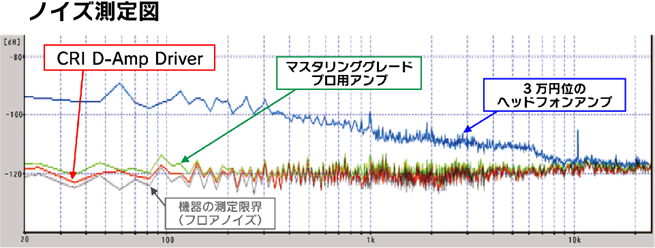 CRI D-Amp Driverの出力方式は、無音時はスピーカーに電流が流れないため、測定限界レベルの残留ノイズしかありません。