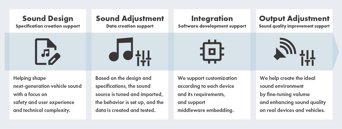 Comprehensive support for mobility sound development — from planning to tuning — backed by deep expertise.