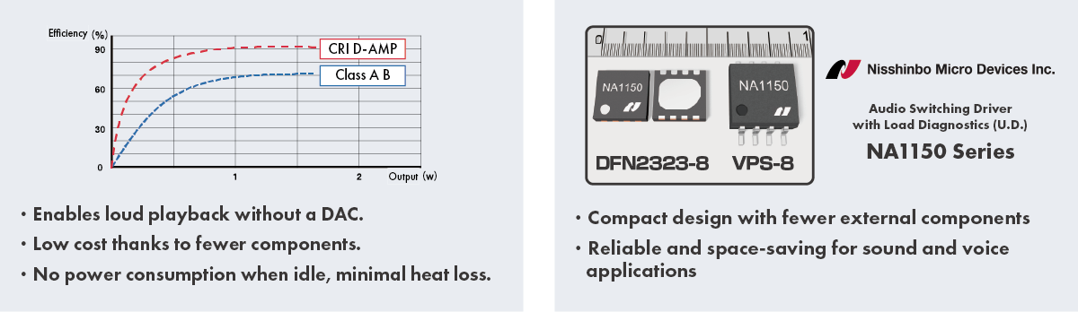 The patented technology “CRI D-Amp Driver™” is middleware that directly drives speakers in full digital, without the need for a DAC or amplifier, operating solely with an H-bridge circuit to enable high-volume playback.
