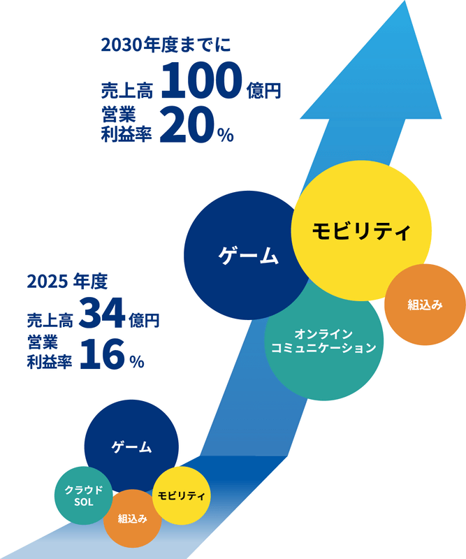 ゲーム依存の事業構造を、2030年度までに、ゲーム、モビリティ、オンラインコミュニケーションの3本柱(コア事業)の事業構造に変革することを目指します。
